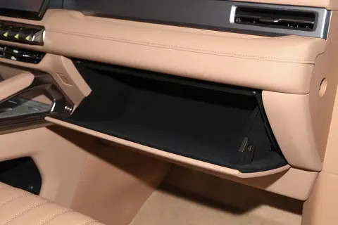 “全感豪华” 在细节处彰显品质。内饰整体设计简洁大方,趋于平直的中控台线条搭配双辐式多功能方向盘,契合当下审美潮流。大尺寸悬浮式中控屏与钢琴式物理按键的组合,既体现科技感又保留了操作的便捷性。副仪表台的钟表设计增添了精致感,把手则在越野时提供额外的支撑,兼顾实用与舒适。车内材质的选择注重质感,从视觉到触感都传递出豪华氛围,让硬派越野也能拥有细腻的驾乘体验。